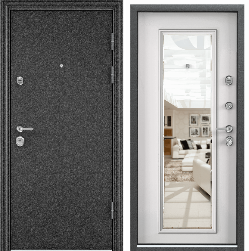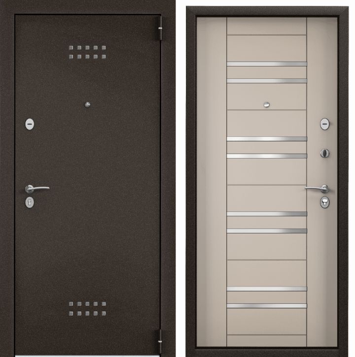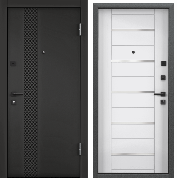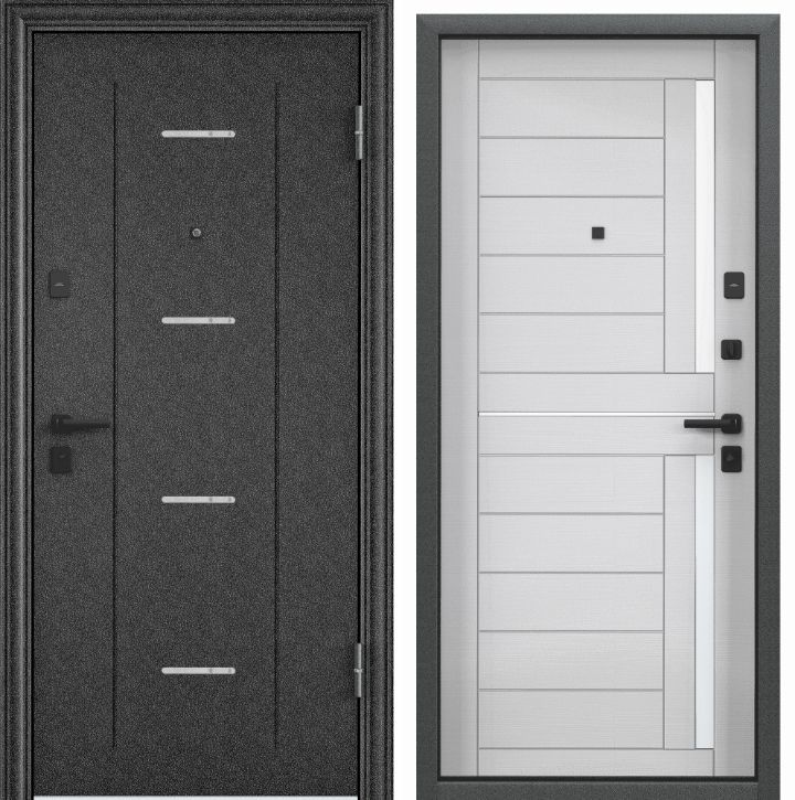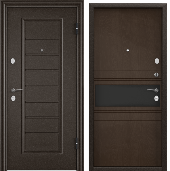 В дверях серии-Х установлено два замка: сувальдный 3-го класса и цилиндровый 3-го класса. Модели Х-7 PRO усилены ребрами жесткости. Это обеспечивает конструкции дополнительную прочность.