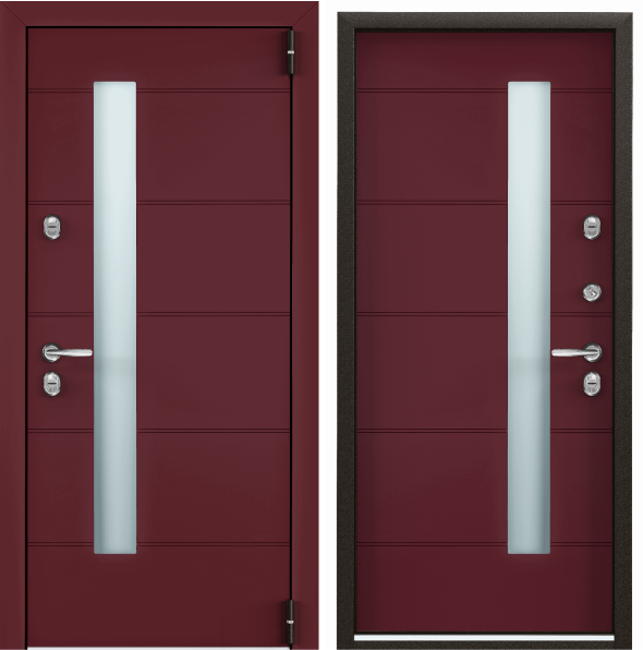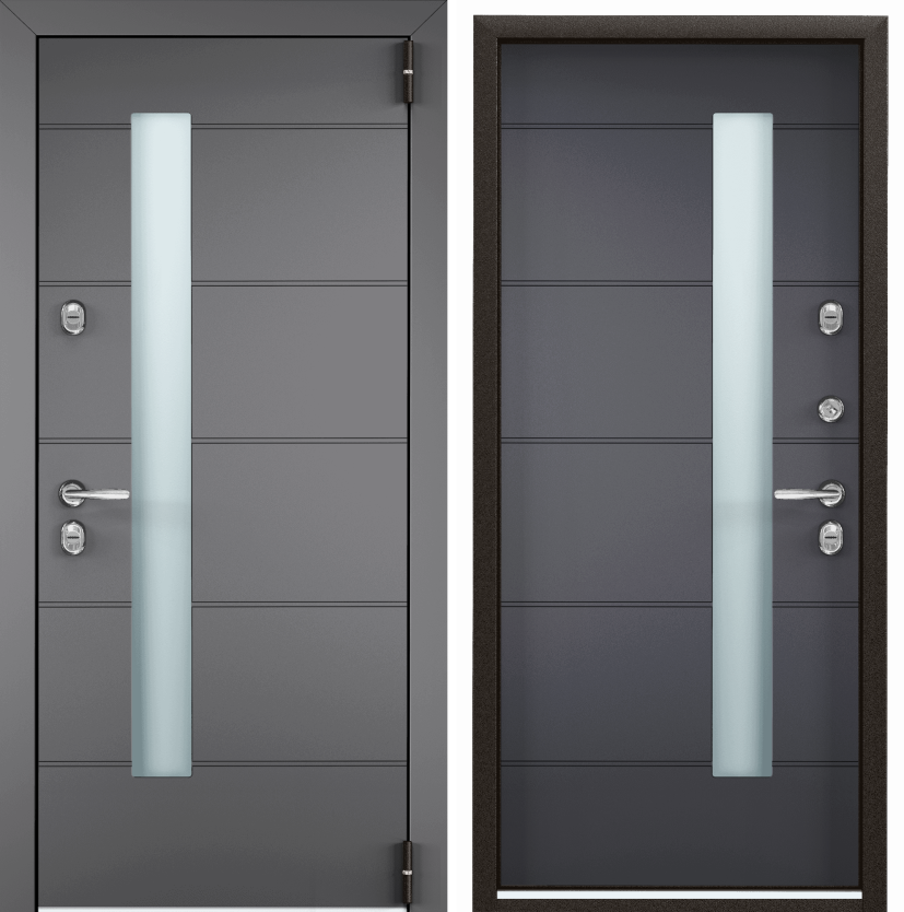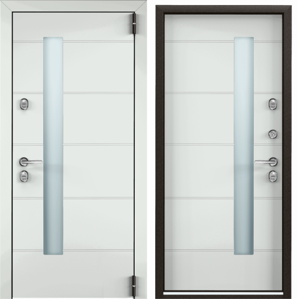 Терморазрыв в полотне «делит» дверь на внешнюю и внутреннюю половины. Первая не пускает холод внутрь, вторая - удерживает тепло в доме. «Столкновение» температур и промерзание двери исключены!