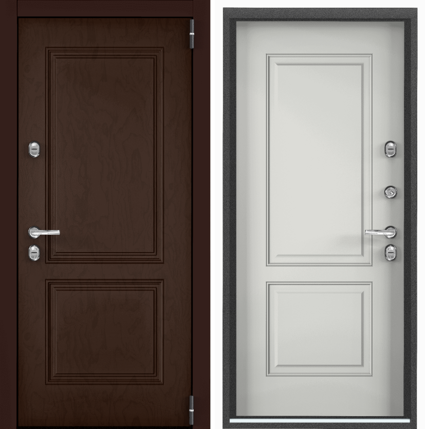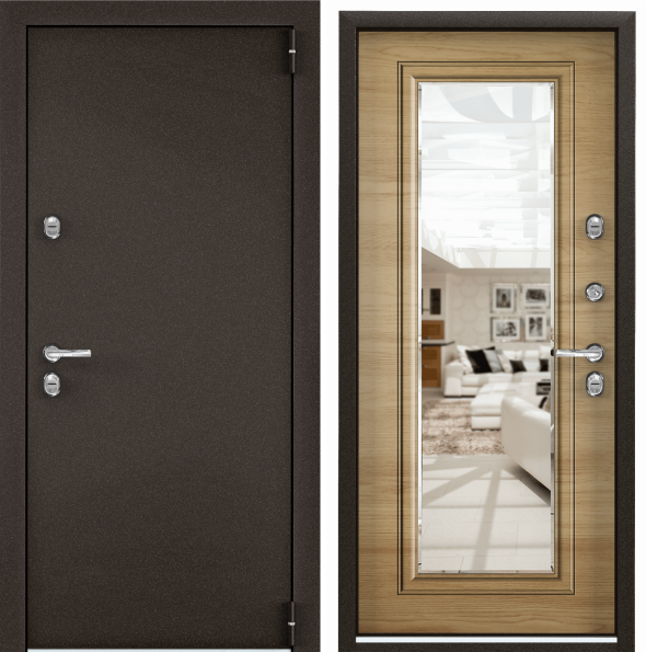 С внешней стороны у дверей порошково-полимерное покрытие. Такая отделка устойчива к ударам и царапинам, а значит сохранит свой идеальный внешний вид на долгие годы.