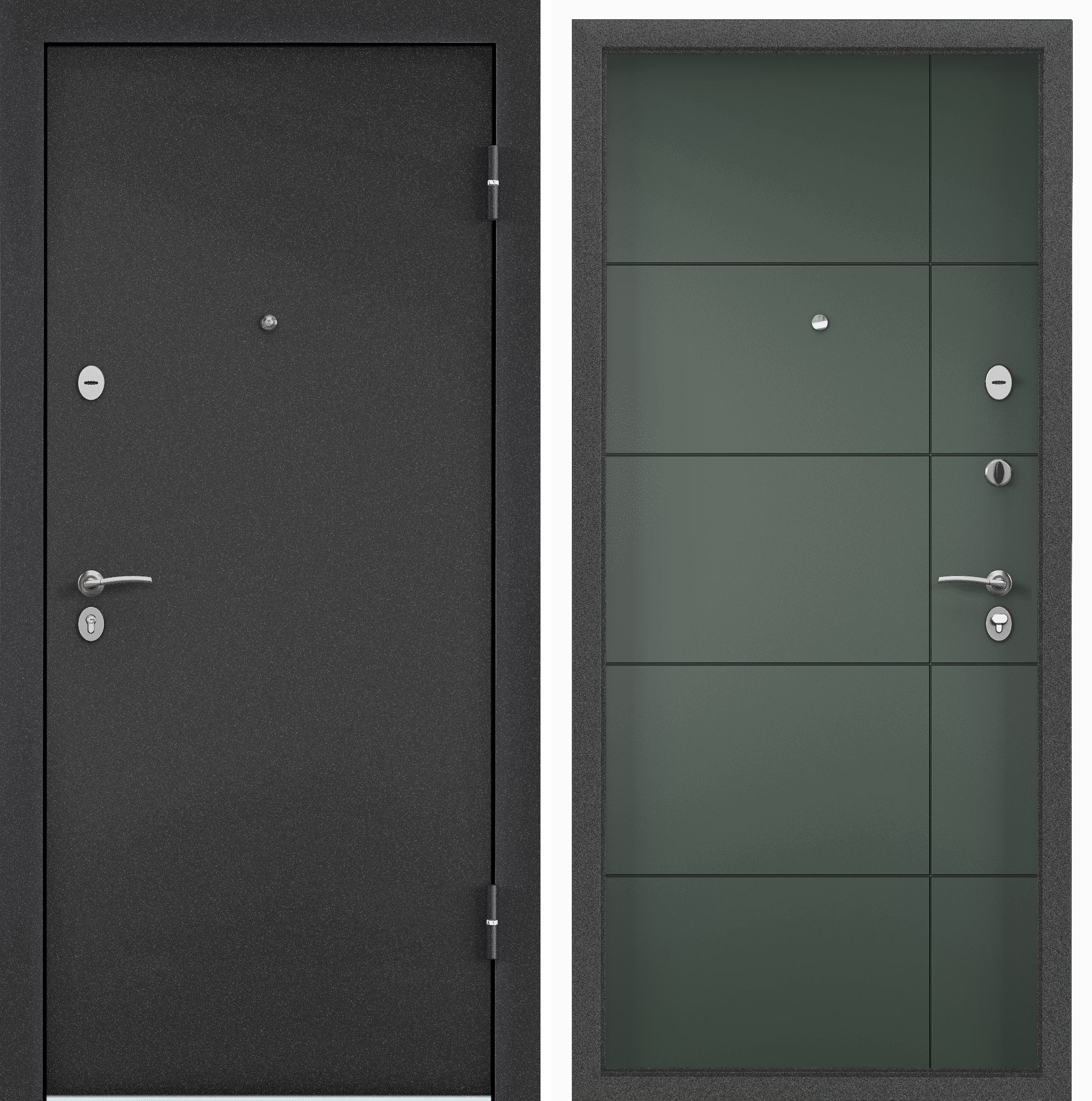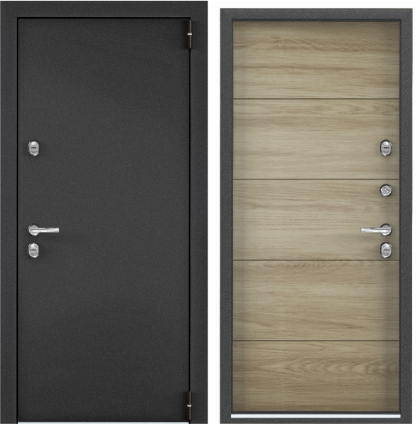 С внешней стороны в базовой комплектации лист металла покрыт порошково-полимерной краской. Это практичный вариант отделки — покрытие устойчиво к ударам, царапинам и загрязнениям.