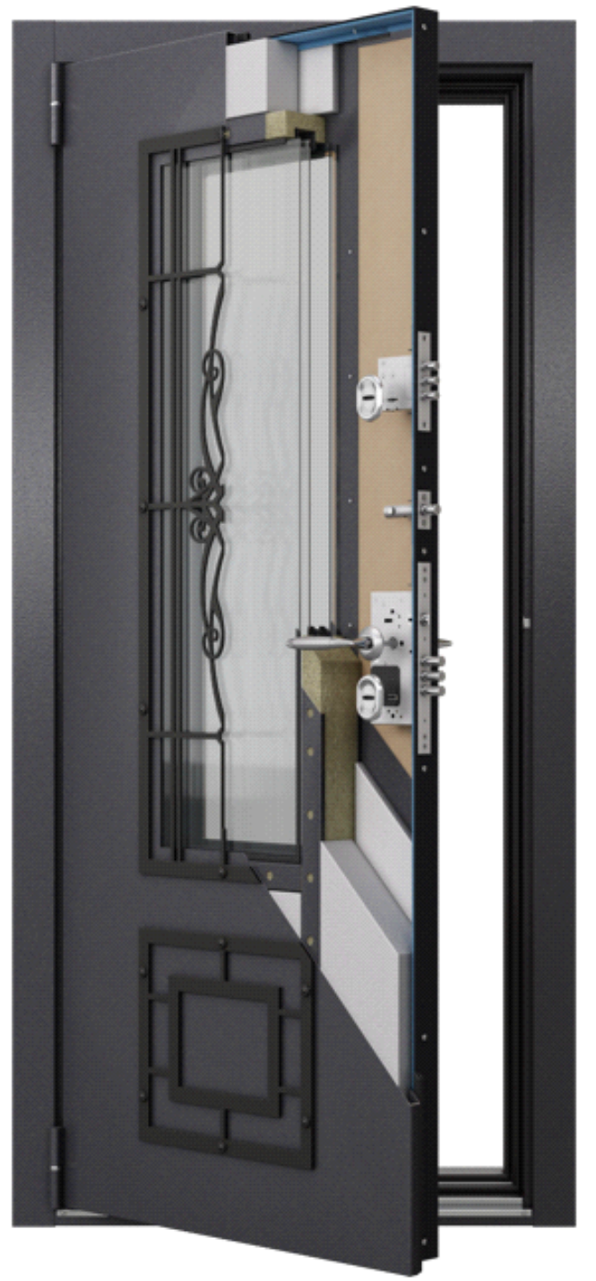 Замковая система класса "премиум", дополнительные точки запирания и броненакладки на замки обеспечивают максимальный уровень защиты от интеллектуальных и силовых методов взлома.